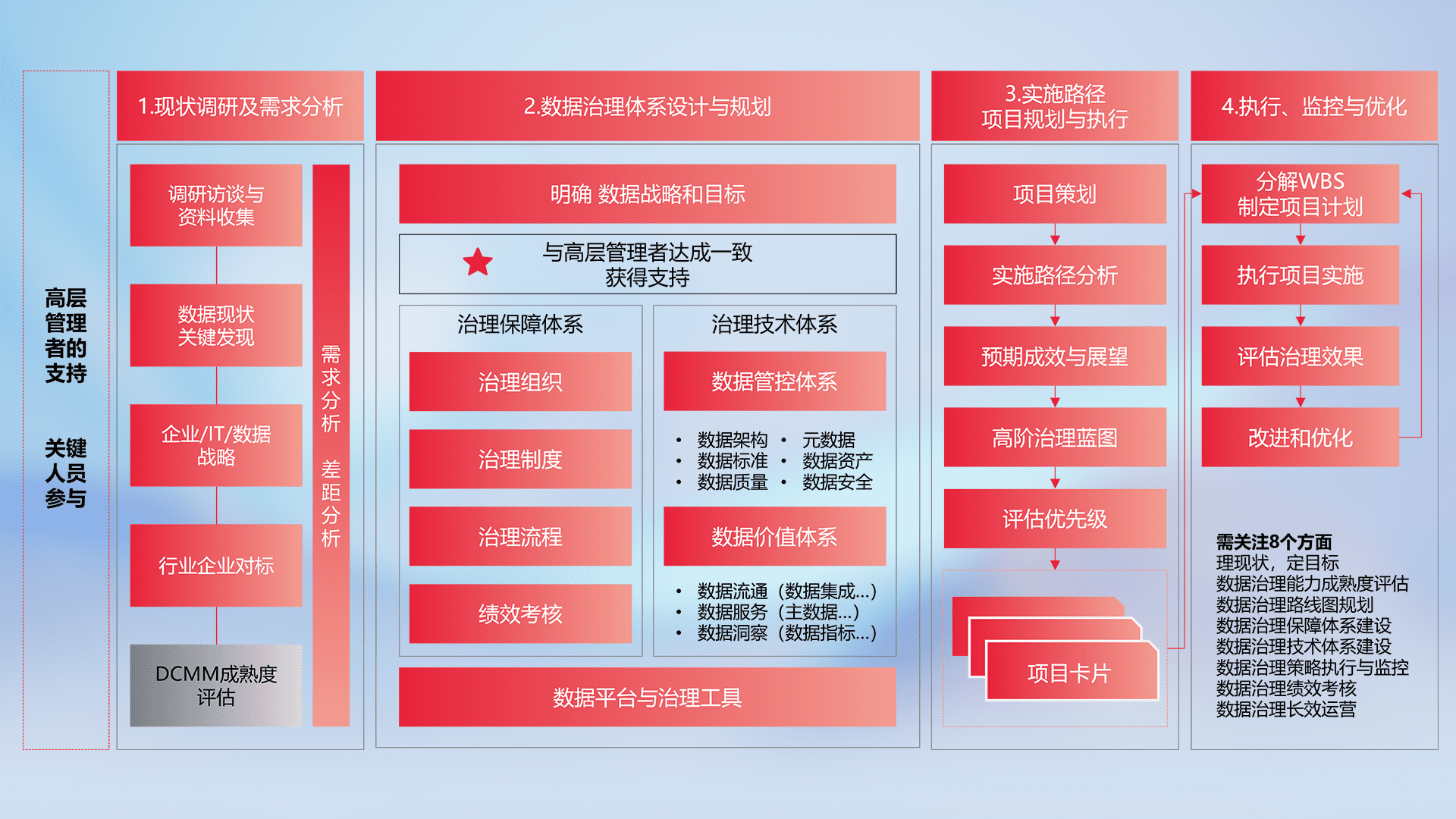 制定并执行统一的数据标准,,,,规范数据定义和格式,,消除冗余和不一致性,,实现跨部门和跨系统的数据一致性,,,为企业提供标准化的数据基础。。。